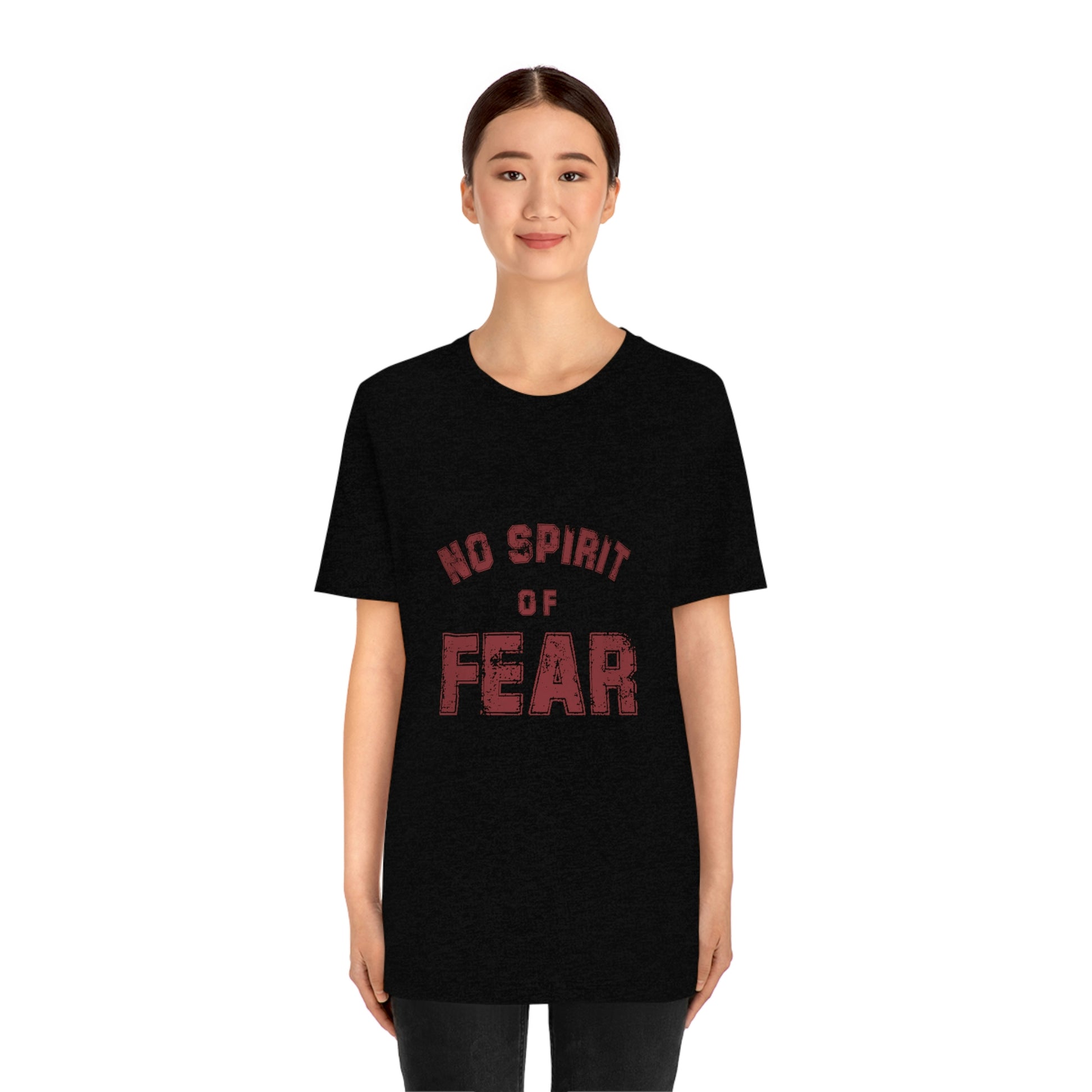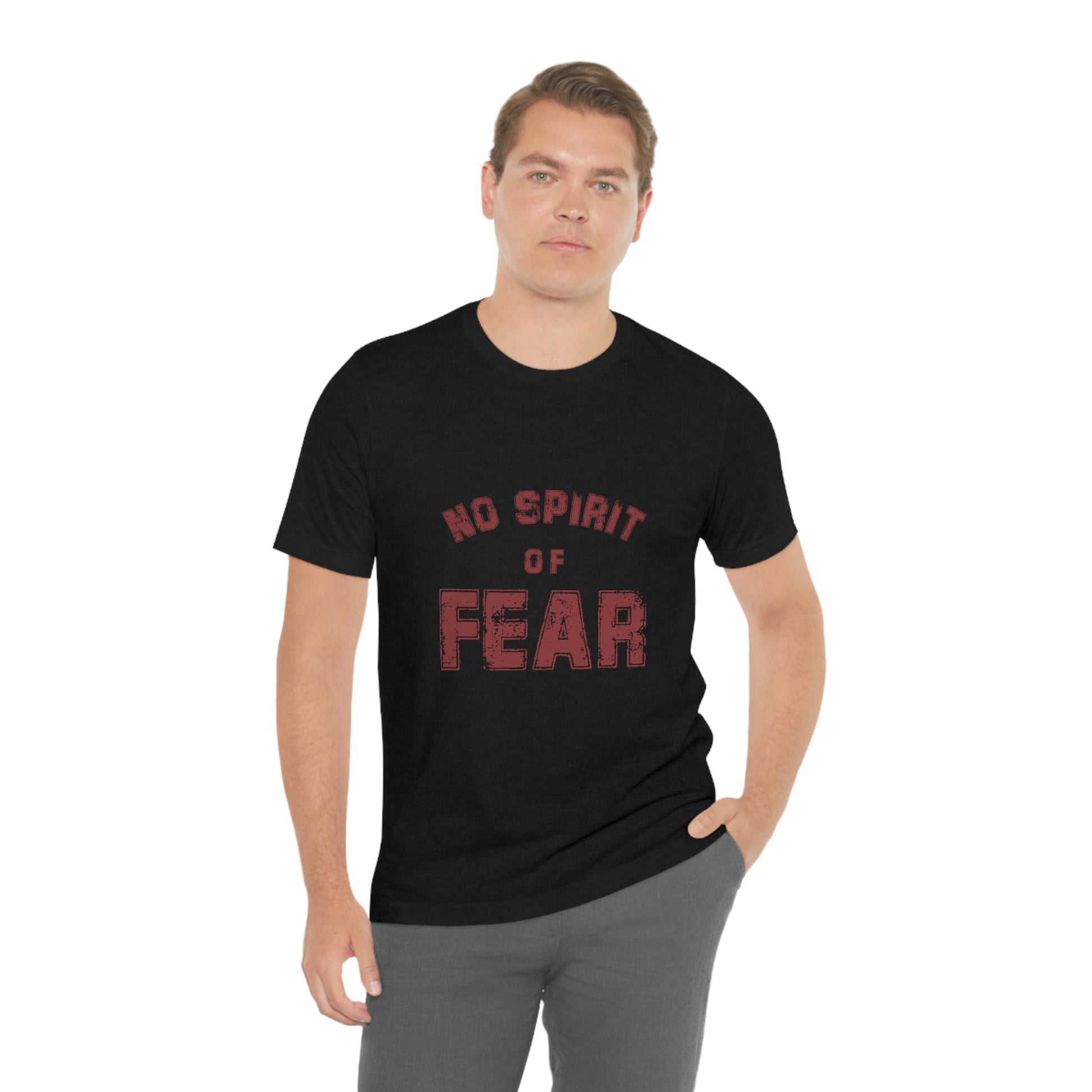 This special shirt is made with light material that feels good against your skin. It also has a label you can easily take off so it won't bother you. The size of the shirt runs true to size, so be sure to check the sizing chart before buying it. Wear this "No Spirit of Fear" shirt and don't let fear stop you! Get it today and show off your style!