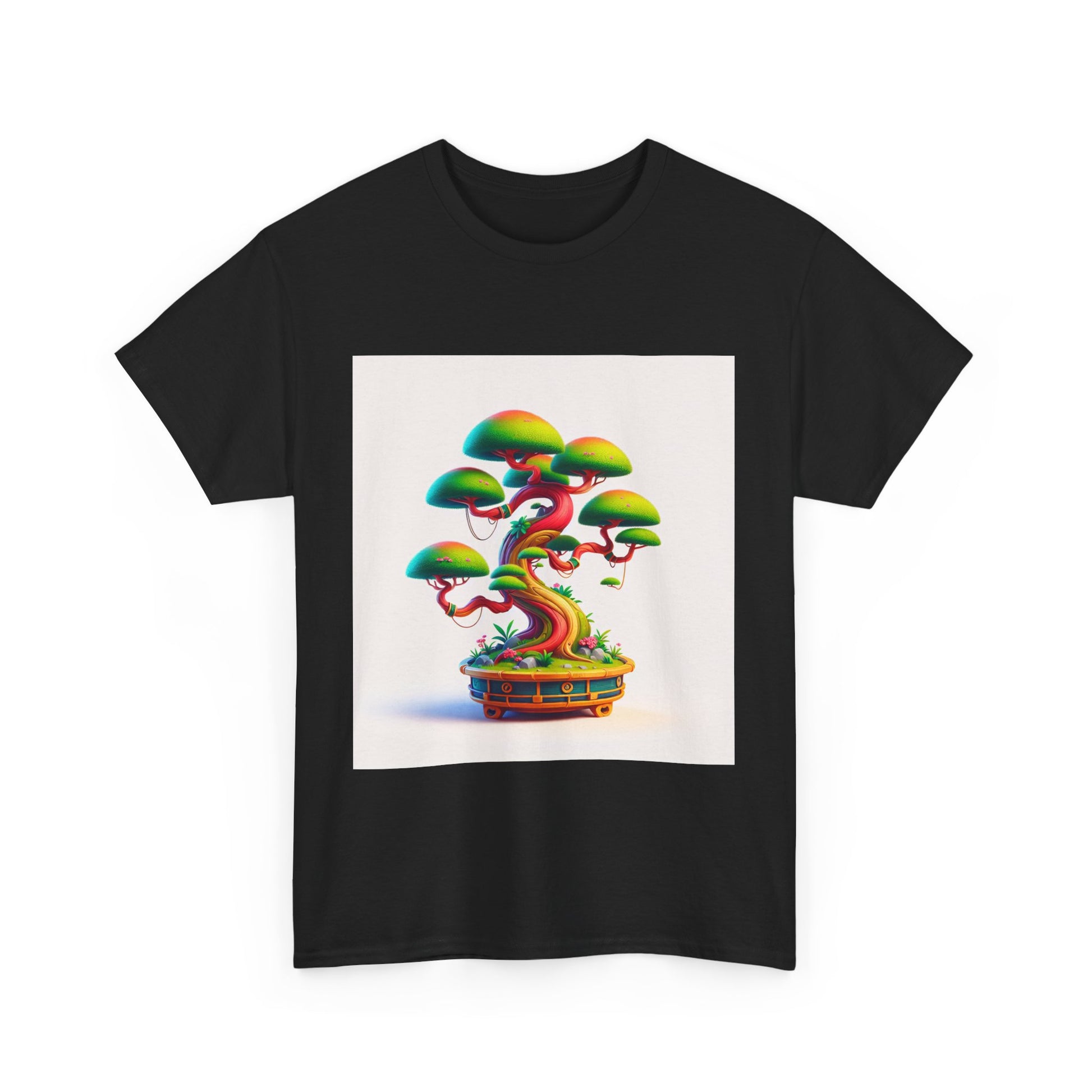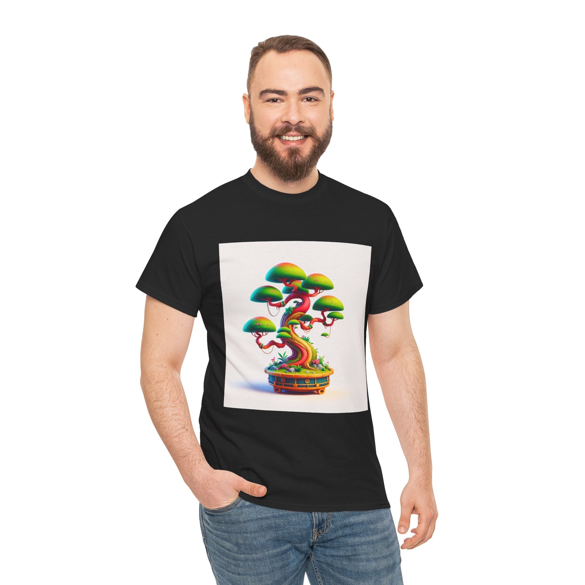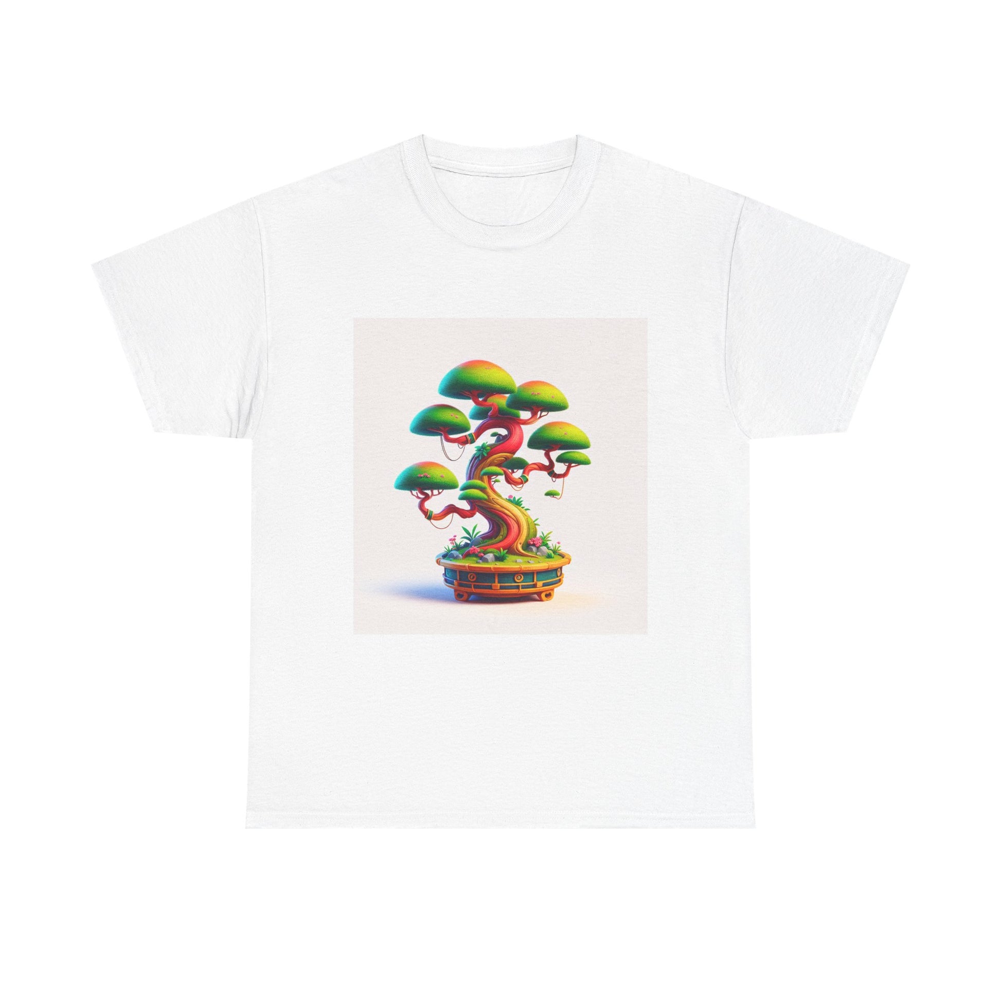 Introducing our Psychedelic Bonsai T-Shirt, a vibrant fusion of nature and imagination. The center design features a whimsical, multicolored bonsai tree adorned with mushroom-like caps, creating an eye-catching piece of wearable art.
